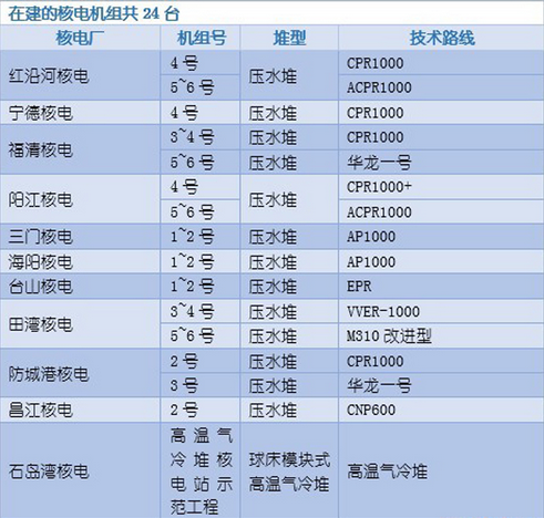 截至目前,中國大陸運行的核電機組30臺,總裝機容量2831萬千瓦,在建的核電機組24臺,總裝機容量2672萬千瓦。其中,在建核電機組數(shù)位居世界第一,在建、在運機組總數(shù)位居世界第三。2015年,核電發(fā)電量約占全國發(fā)電量的3.01%。