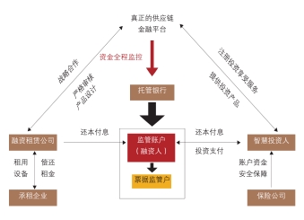 3、基于融資租賃業(yè)務(wù)為交易模式,租賃資產(chǎn)應(yīng)收租金收益權(quán)作為支付保障而設(shè)計(jì)的產(chǎn)品。該產(chǎn)品一般交易結(jié)構(gòu)如下: