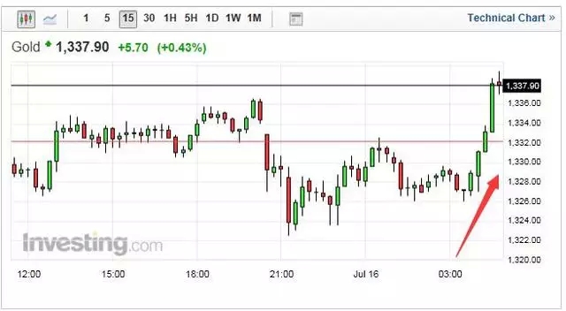 避險(xiǎn)資產(chǎn)上漲。黃金拉升10美元至1337.9美元/盎司。
