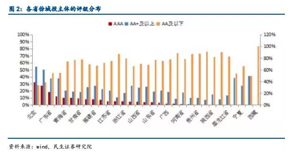 結(jié)合城投主體評級,我們認為,北上廣津作為全國經(jīng)濟最發(fā)達地區(qū),財力雄厚,地方政府信用較好,是投資的首選。