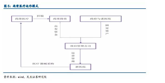 可以預(yù)見未來醫(yī)療行業(yè)市場景氣度提升且市場規(guī)模持續(xù)增加,有望迎來快速發(fā)展的機遇期,為社會資本提供了巨大的投資空間。尚榮醫(yī)療緊跟國家政策的步伐,發(fā)展PPP模式項目,通過股權(quán)投資方式,輔以融資杠桿,主營業(yè)務(wù)包括醫(yī)院整體建設(shè)、醫(yī)療器械產(chǎn)銷和醫(yī)院后勤管理服務(wù)三大板塊,涉及醫(yī)院規(guī)劃設(shè)計、醫(yī)院融資建設(shè)、醫(yī)療項目實施、醫(yī)院專業(yè)工程、醫(yī)療設(shè)備配置、醫(yī)院信息化系統(tǒng)、醫(yī)療用品生產(chǎn)等七大細分業(yè)務(wù)領(lǐng)域。尚榮醫(yī)療深入?yún)⑴c,除可以分享醫(yī)院的利潤外,還可掌控醫(yī)院醫(yī)療器械的采購與后勤管理等,已成為國內(nèi)大型的綜合醫(yī)療服務(wù)提供商,獲得了可觀的收益。