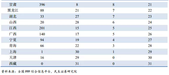 從表2可以看出,入庫項目規(guī)模和落地項目規(guī)模呈現(xiàn)正相關(guān),入庫項目規(guī)模排名靠前的貴州、山東、河南、四川等地表現(xiàn)不俗,落地項目規(guī)模遙遙領(lǐng)先。值得提出的是,北京雖然入庫項目總量不高,但隨著地鐵14和16號線、興延高速等大型項目相繼落地,PPP項目落地駛?cè)肟燔嚨溃涞匾?guī)模大幅提升。