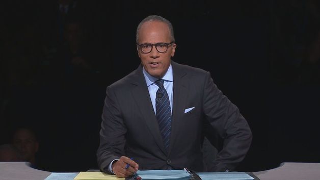 特朗普與希拉里的競選團(tuán)隊相繼入場,會議主席Lester Holt 就坐,美國大選首場電視辯論正式開始。