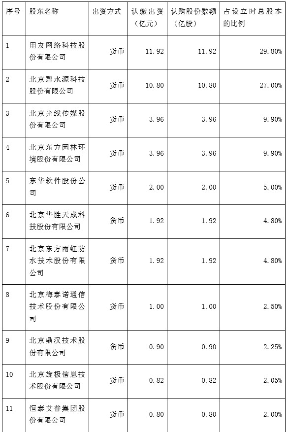 更多的細(xì)節(jié)在不久前由中關(guān)村銀行的第一大股東“用友網(wǎng)絡(luò)”所披露,其公告稱,擬與碧水源、光線傳媒等10家公司共同投資發(fā)起設(shè)立北京中關(guān)村銀行股份有限公司。擬注冊資本為40億元人民幣,擬注冊地址為北京市海淀區(qū)。
