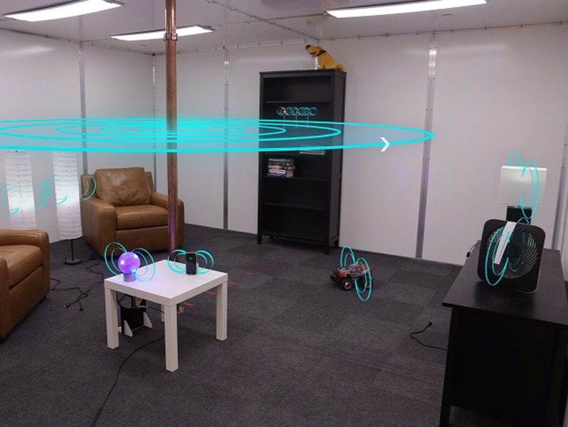 這樣聽起來可能有些晦澀難懂,我們不妨將金屬容器想象成一個54立方米的空間,這樣的空間規(guī)格接近美國大部分家庭的客廳。迪士尼研究中心已在54立方米的空間內做了測試,在1.32MHz頻率下QSCR這樣的方式可以安全的傳輸高達1900w的有效功率,而波谷效率為40%,而峰值數據高達95%。除了移動設備外,研究人員也拿智能電燈、智能電扇等進行測試,測試結果顯示,這些智能設備都可以接受這樣的充電功率。換句話說,迪士尼研究中心相當于是在一個空間內營造了一個無線充電的環(huán)境。