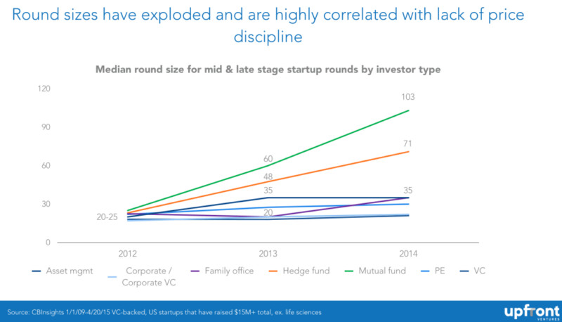就在短短兩年間,共同基金投資交易周期中的中位數(shù)值已經(jīng)翻了兩倍多,對(duì)沖基金也存在同樣現(xiàn)象。也就是說,大量資金在科技創(chuàng)業(yè)公司融資末期的生態(tài)系統(tǒng)中翻騰攪動(dòng),這對(duì)于快速增長(zhǎng)的科技型創(chuàng)業(yè)公司真的是個(gè)利好嗎?長(zhǎng)遠(yuǎn)看來,其實(shí)不然。因?yàn)檫@些公司最終都會(huì)付出一定代價(jià)。要么最終一步步走向 IPO,要么被那些幾乎確定他們要上市的大公司收購(gòu)。所以終究還得要回歸理性。