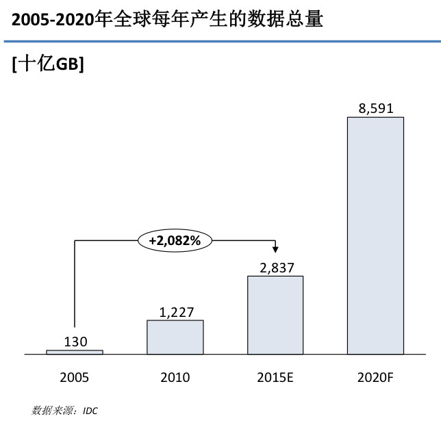 3.海量數(shù)據(jù)的出現(xiàn):?根據(jù)預計,2015 年全球產(chǎn)生的數(shù)據(jù)總量將達到十年前的 20 多倍。如此海量的數(shù)據(jù)給機器學習的提供了足夠多的素材(但是需要注意的是,在其中真正有標注的數(shù)據(jù)不超過總量的 10%)。