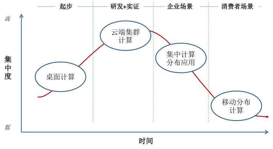 從人工智能的整個發(fā)展歷程來看,按照應用場景和人工智能資源的集中度,可以大致分成三個階段。